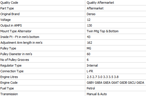 Specifications shown in last image - please compare to your original as there is more than 1 type for each model